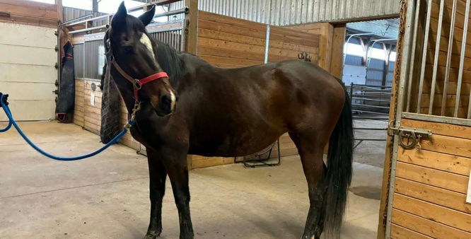 Jimmy is a sweet approximately 17-year old 16hh Thoroughbred mare who is easy to handle and a pleasure to have in the barn.